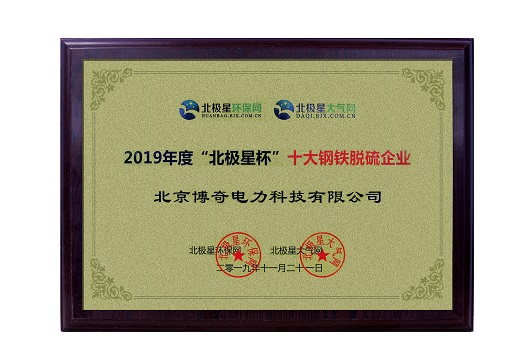 2019年11月21日,參加“2019年北極星十大煙氣治理企業(yè)評(píng)選”,公司獲得“十大鋼鐵脫硫企業(yè)獎(jiǎng)”